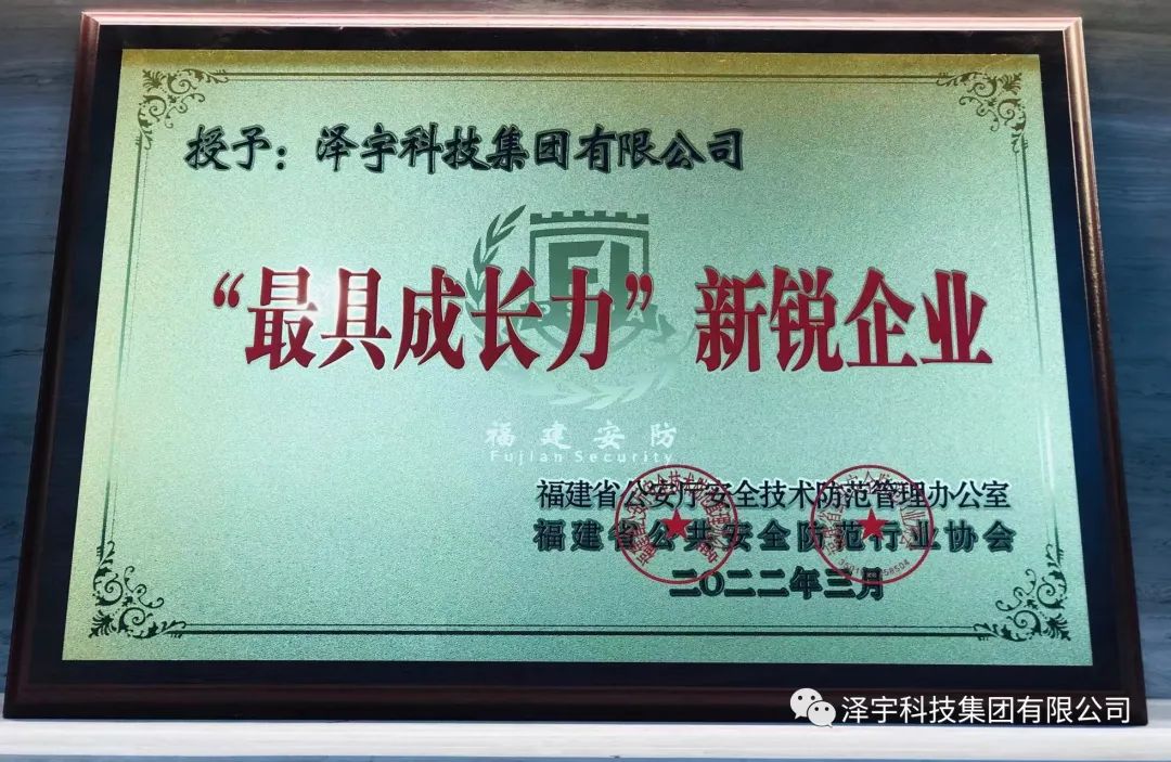 會(huì)上,澤宇科技被福建省公安廳安全技術(shù)防范管理辦公室和福建省安全技術(shù)防范行業(yè)協(xié)會(huì)授予“最具成長力新銳企業(yè)”榮譽(yù)稱號(hào)。