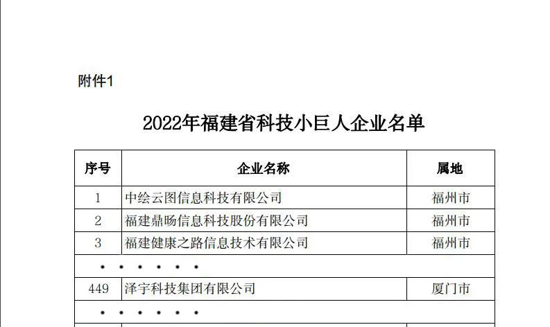 日前,福建省科學技術廳公布了“2022年福建省科技小巨人企業(yè)”名單,經專家組評審,共970家企業(yè)入圍。澤宇科技集團有限公司經過嚴格的遴選和評審認定,在眾多參評企業(yè)中脫穎而出,榮獲“福建省科技小巨人企業(yè)”稱號。